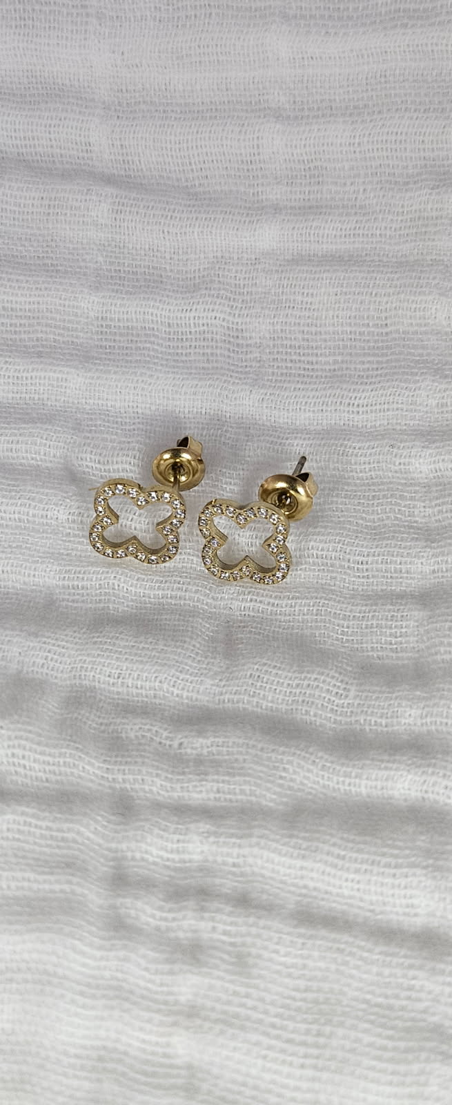 Ajoutez une touche d’élégance à votre look avec nos boucles d’oreilles Clover Shine, au design trèfle ajouré entièrement serti de strass brillants.